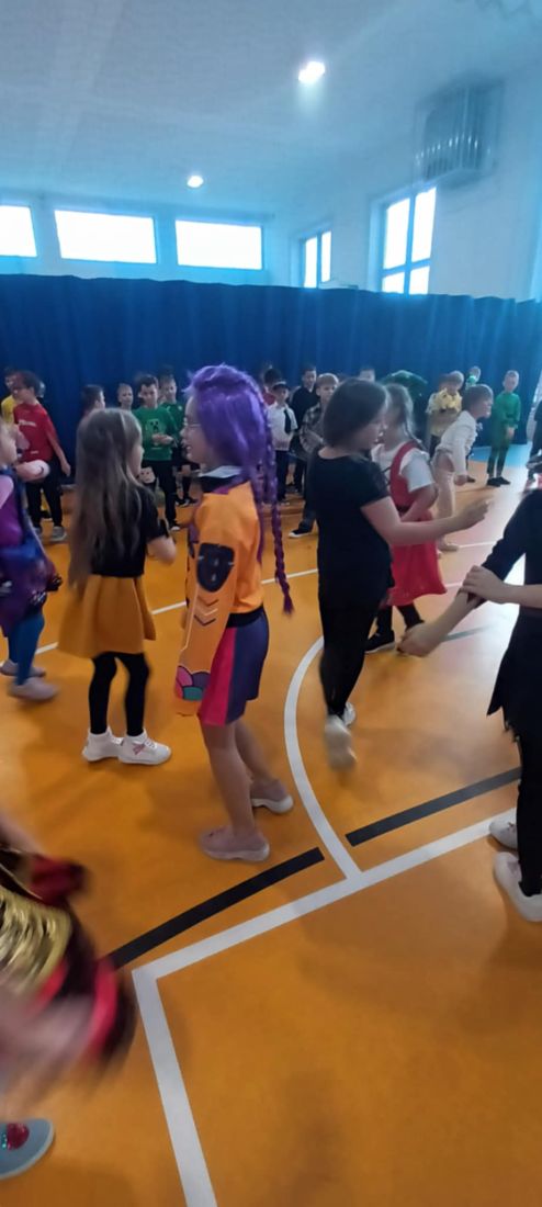 Zabawę poprowadziła pani animatorka, która przygotowała wiele atrakcji – tańce 💃🕺, konkursy 🏆 oraz wspólne zabawy przy muzyce 🎵. Uczniowie chętnie i z dużym zaangażowaniem brali udział we wszystkich aktywnościach 🤩.