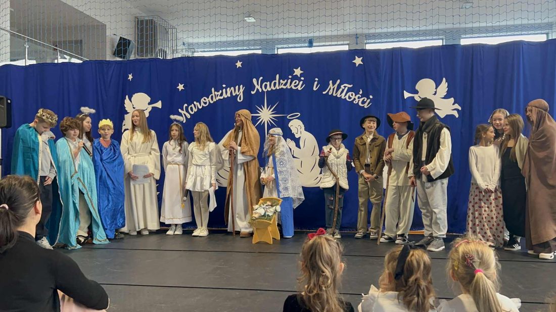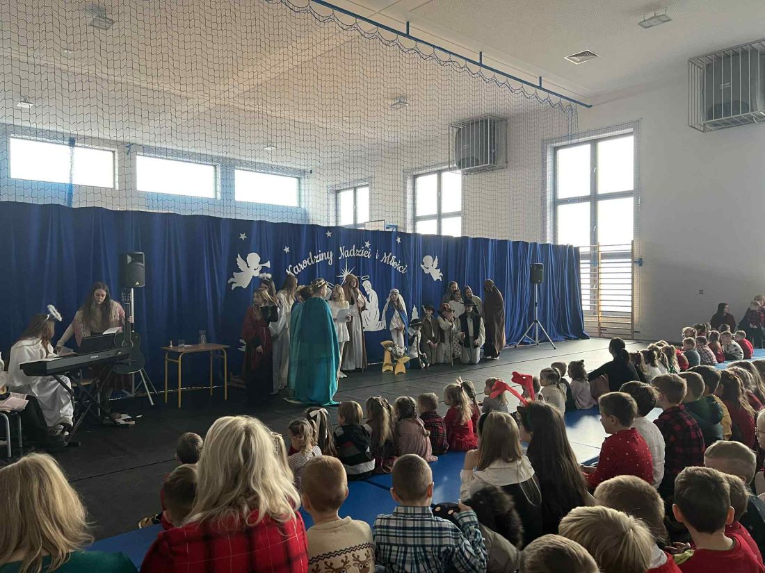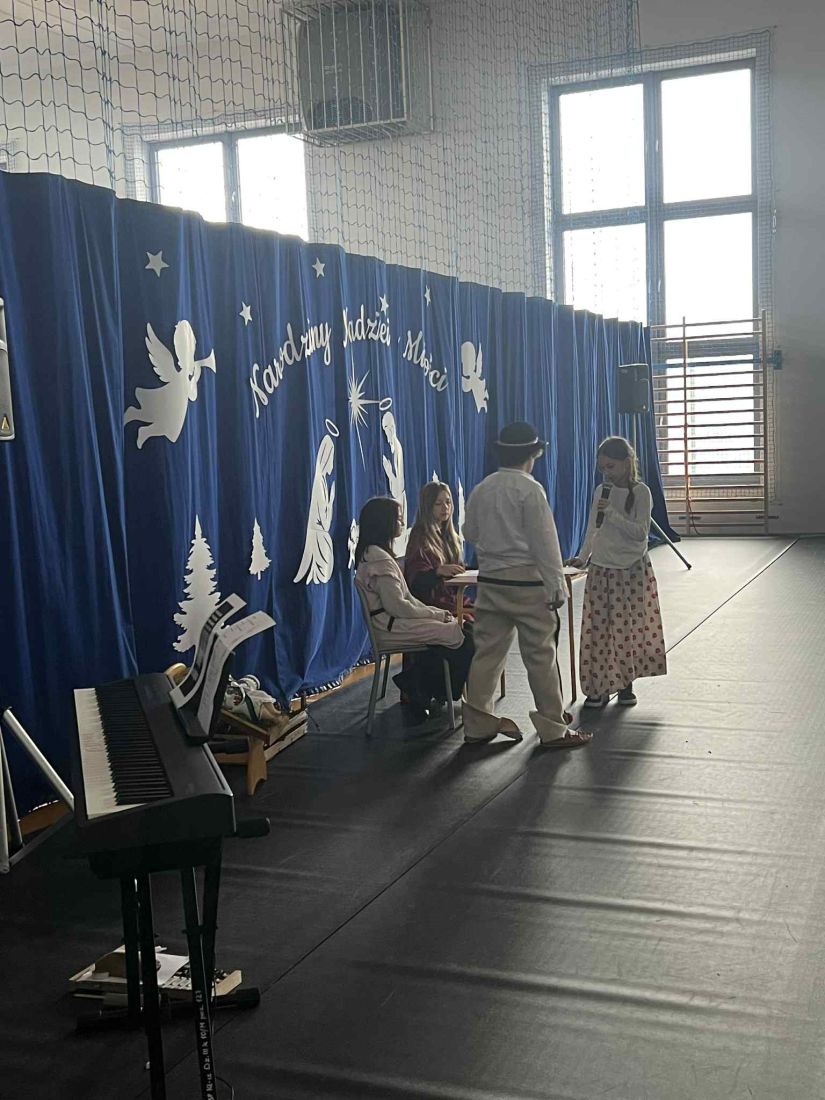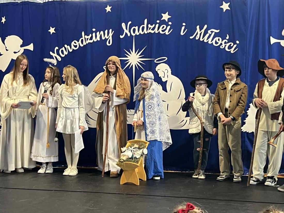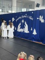 W piątek 19 grudnia odbyło się wyjątkowe spotkanie świąteczne 🎄, podczas którego obejrzeliśmy jasełka w wykonaniu uczniów klas V i VI 🎭. Przedstawienie zostało przygotowane pod opieką pani Oliwii Zubczyńskiej i wprowadziło całą społeczność szkolną w świąteczny, bożonarodzeniowy nastrój ✨. Uczniowie z dużym zaangażowaniem wcielili się w swoje role, prezentując zarówno umiejętności aktorskie, jak i wokalne 🎶, co zostało nagrodzone gromkimi brawami 👏.