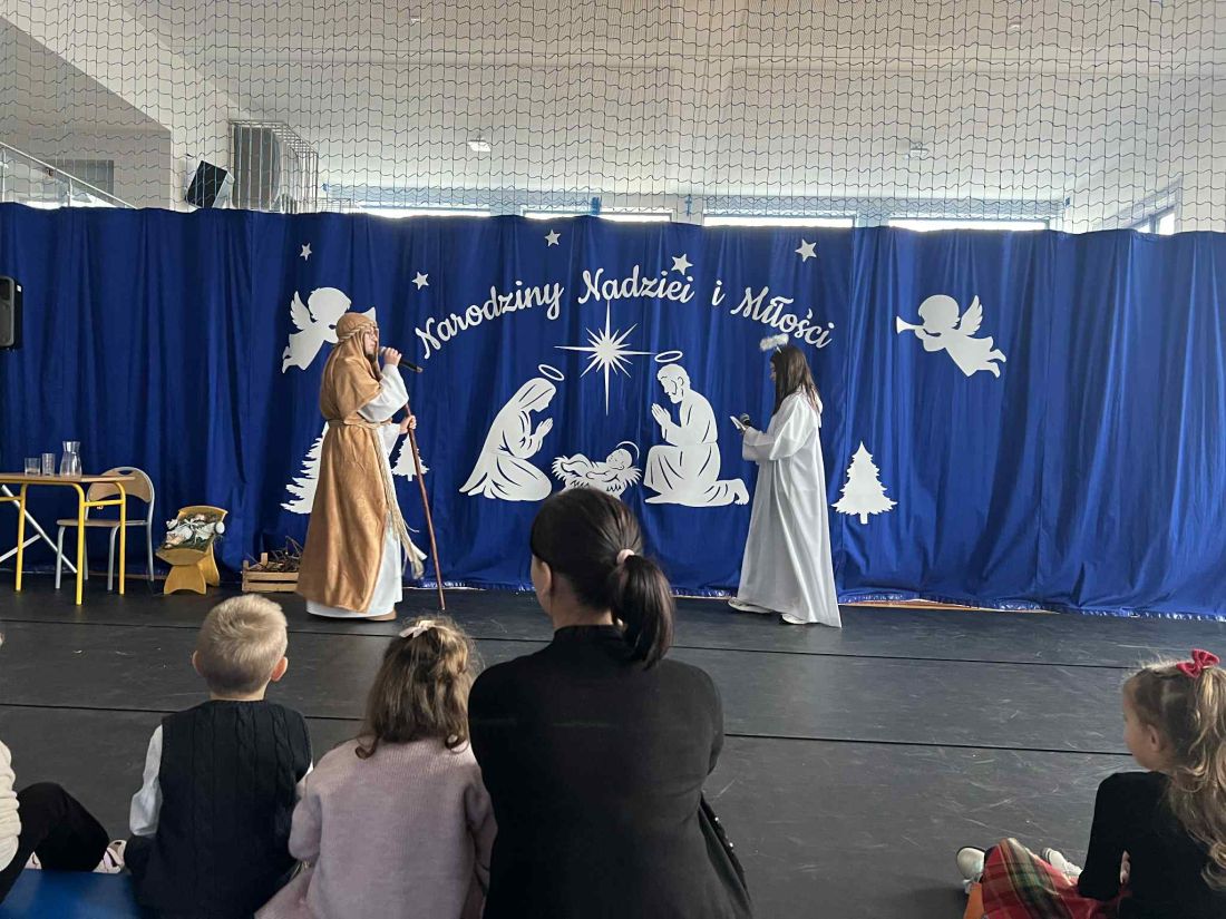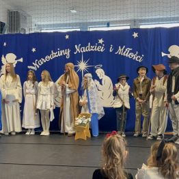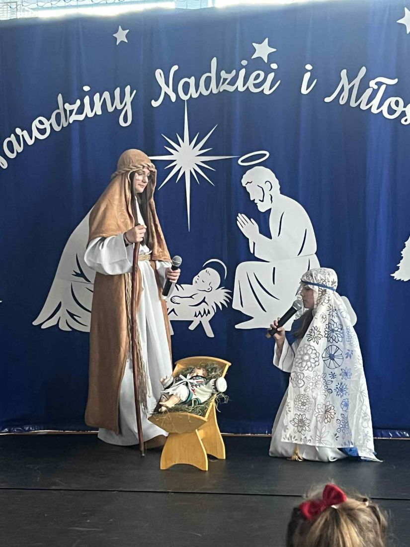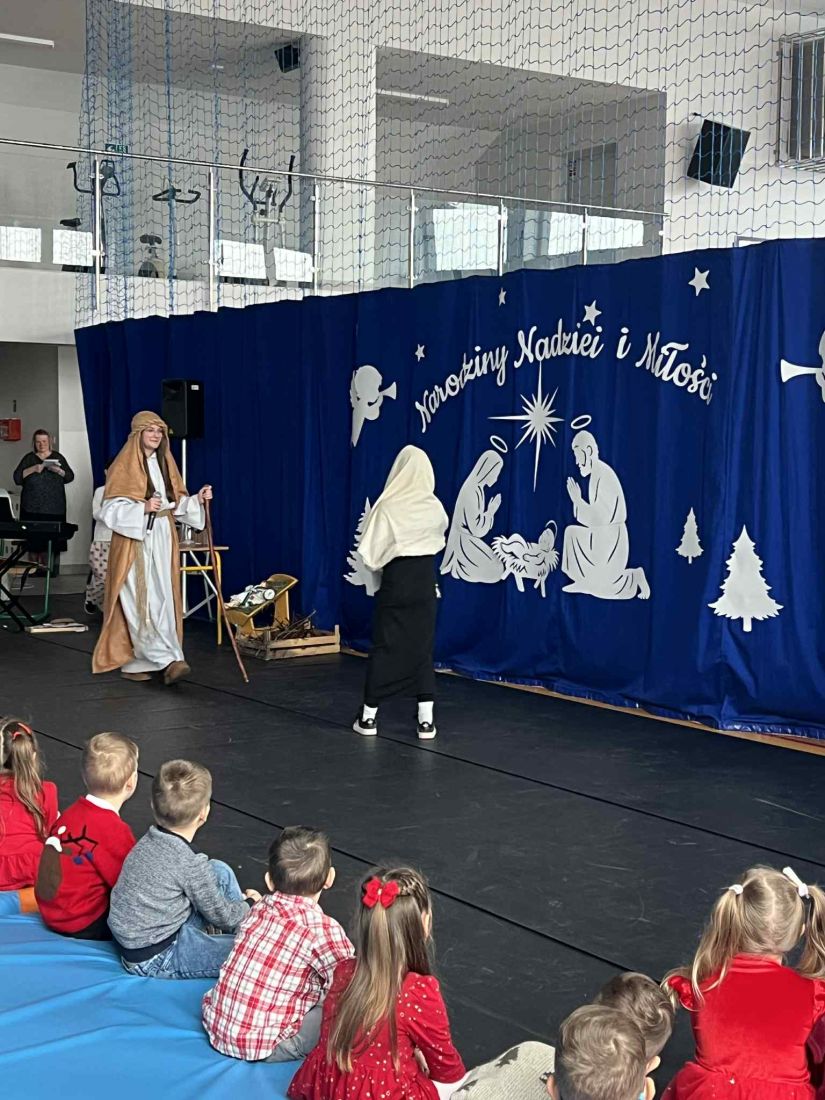 W piątek 19 grudnia odbyło się wyjątkowe spotkanie świąteczne 🎄, podczas którego obejrzeliśmy jasełka w wykonaniu uczniów klas V i VI 🎭. Przedstawienie zostało przygotowane pod opieką pani Oliwii Zubczyńskiej i wprowadziło całą społeczność szkolną w świąteczny, bożonarodzeniowy nastrój ✨. Uczniowie z dużym zaangażowaniem wcielili się w swoje role, prezentując zarówno umiejętności aktorskie, jak i wokalne 🎶, co zostało nagrodzone gromkimi brawami 👏.