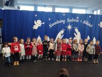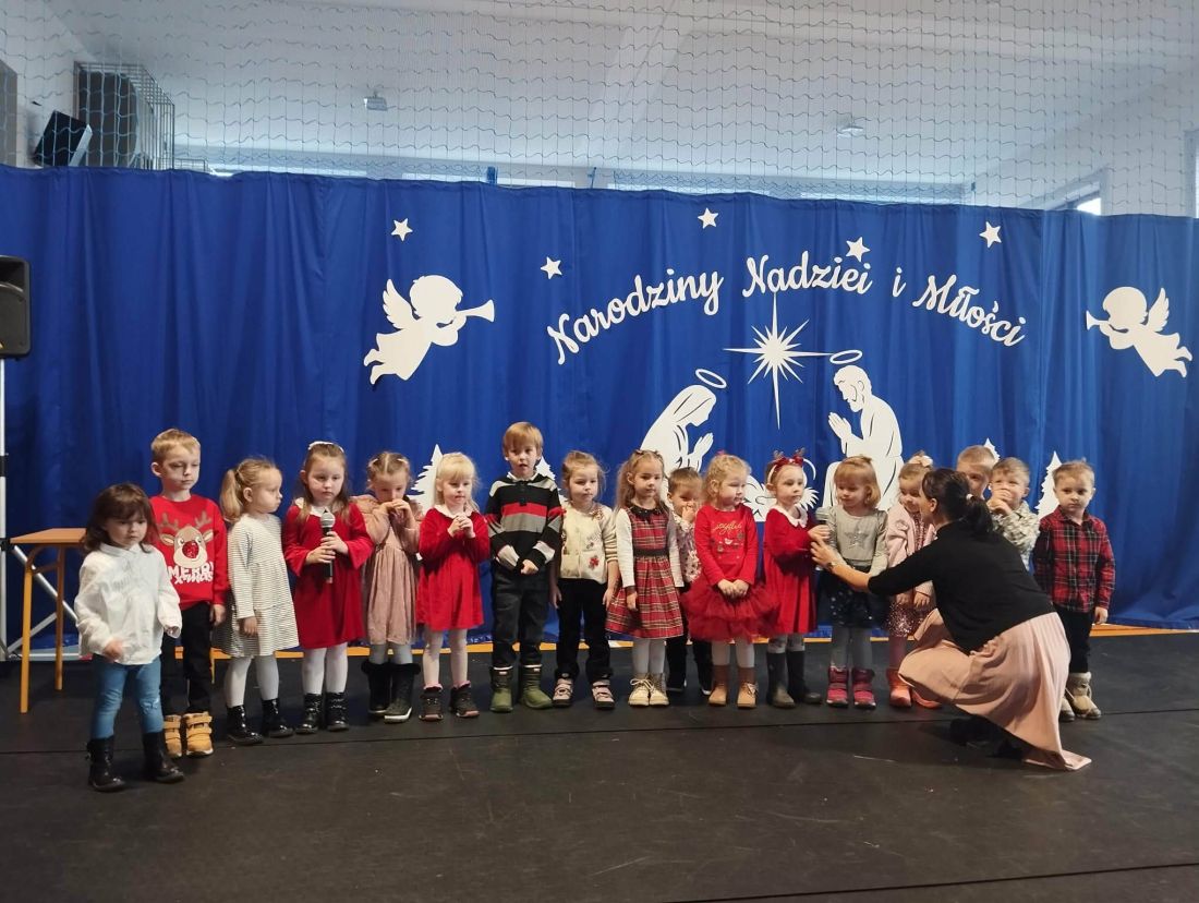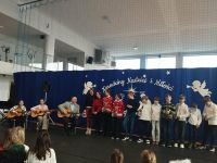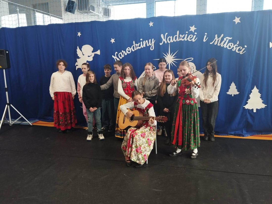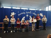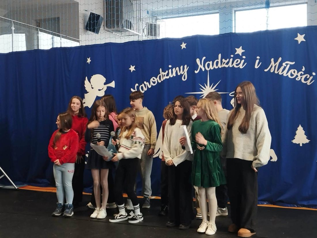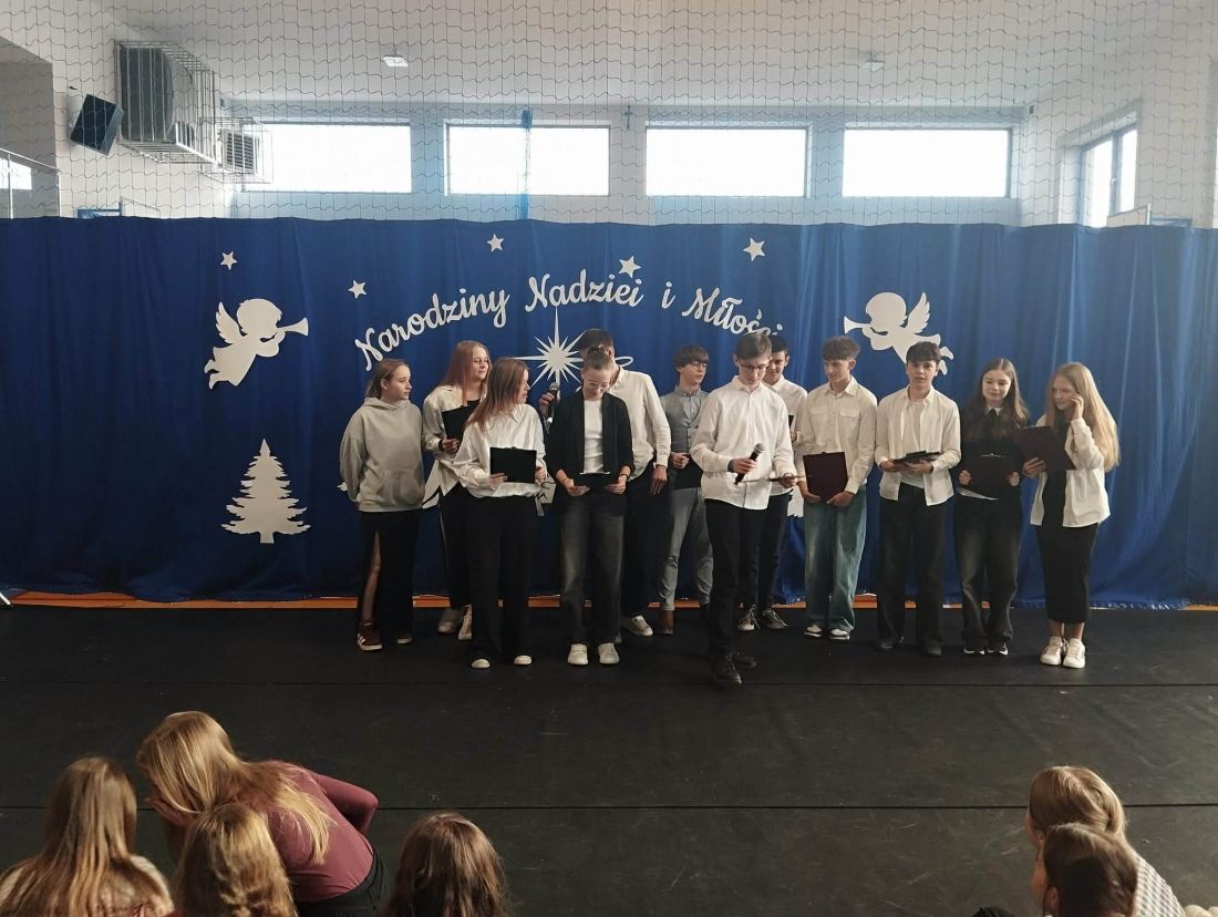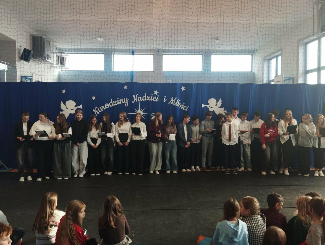 Kolejnym punktem programu był koncert kolęd, który stworzył niezwykle ciepłą i radosną atmosferę 😊. Każda klasa zaprezentowała jedną kolędę, dzięki czemu mogliśmy usłyszeć wiele znanych i lubianych utworów bożonarodzeniowych 🎶. Wspólne kolędowanie sprzyjało integracji uczniów i nauczycieli 🤝 oraz podkreśliło wyjątkowy charakter zbliżających się świąt 🎄.