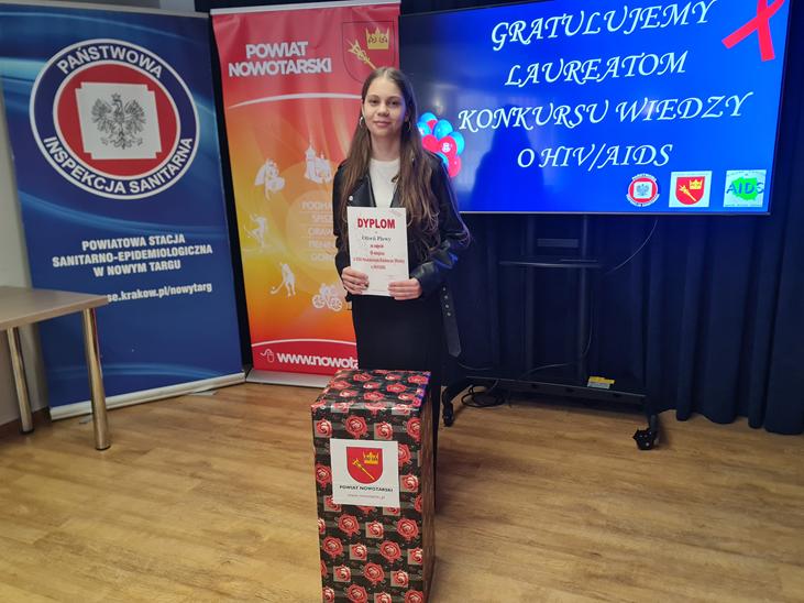 1 grudnia w sali obrad Urzędu Miasta Nowy Targ odbył się finał Powiatowego Konkursu Wiedzy o HIV/AIDS pod hasłem „Nie daj szansy AIDS” organizowany przez Państwową Inspekcję Sanitarną. Celem konkursu było kształtowanie postaw prozdrowotnych oraz zachęcenie uczniów do samodzielnego pogłębiania wiedzy na temat HIV i AIDS.