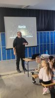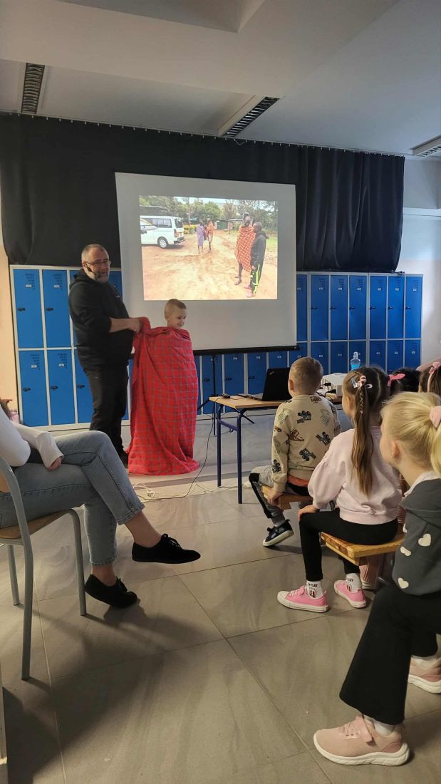 Pan Dariusz przeprowadził dwa spotkania – osobno dla klas 0–3 oraz 4–8. Podczas prezentacji opowiadał o swojej wyprawie, pokazując liczne zdjęcia i ciekawostki z kenijskich podróży.
