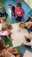 W oddziałach przedszkolnych skupiono się na działaniach sprzyjających budowaniu relacji, integracji rówieśniczej i wzajemnemu poznawaniu się. Dzieci słuchały opowiadań, rozmawiały o emocjach i sposobach wyrażania ich w konstruktywny sposób. Wspólnie tworzyły prace plastyczne, wykonywały zadania symboliczne (np. „Z sercem na dłoni”) oraz uczestniczyły w zabawach i scenkach, które pomagały im zrozumieć, jak żyć w zgodzie z rówieśnikami.