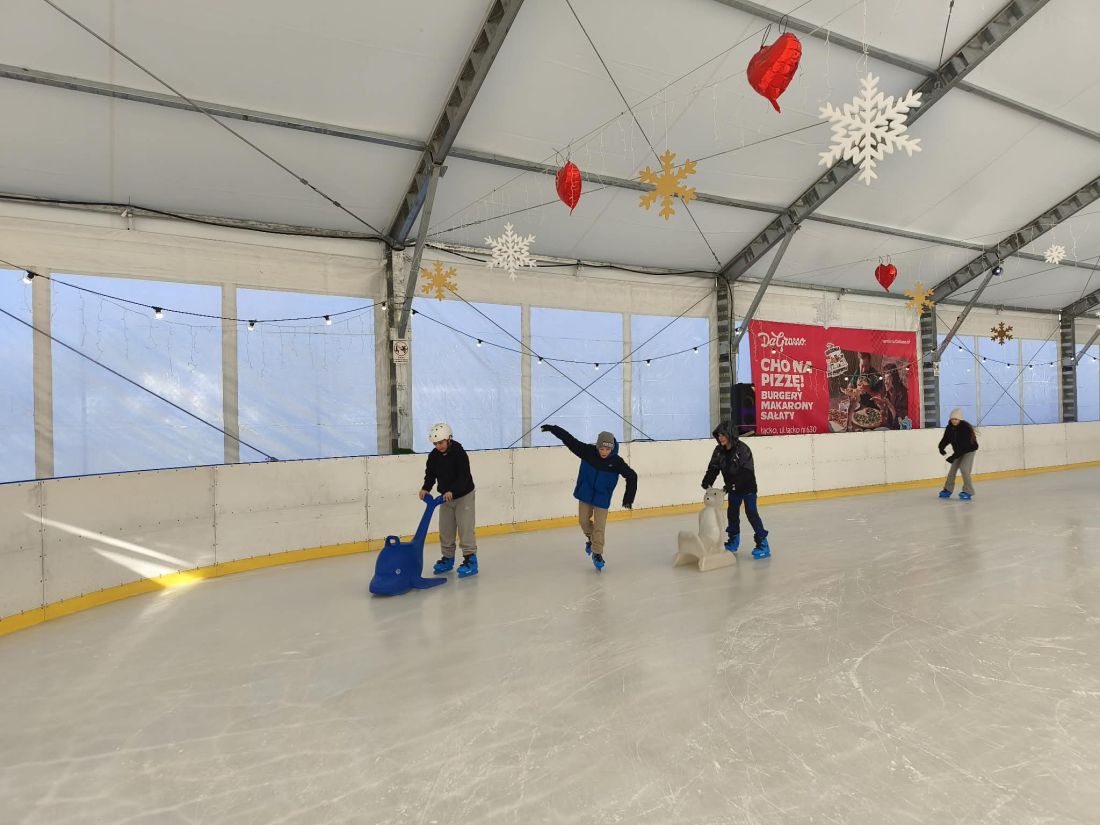 Dla wielu była to okazja do nauki jazdy. Bardziej doświadczeni łyżwiarze pomagali kolegom i koleżankom 🤝.