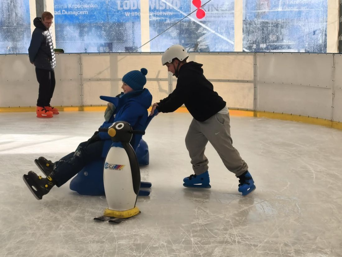 W czwartek, 19 lutego, klasa 6b realizowała zajęcia wychowania fizycznego na lodowisku w Krościenku. Po założeniu łyżew uczniowie ruszyli na taflę.