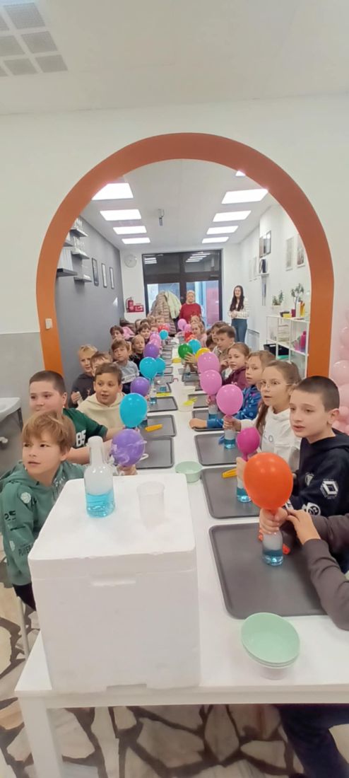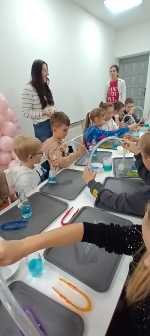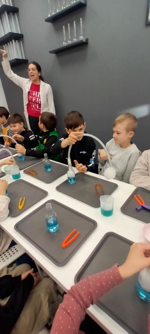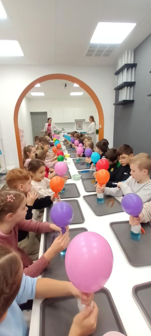 12 grudnia 🎄 dzieci z klas drugich i trzecich z okazji mikołajek 🎅 były na wycieczce w Nowym Targu. Uczestniczyły w warsztatach 🧪🍕: Eksperymenty Pani Proton ⚗️ oraz przyrządzanie pizzy 👩🍳👨🍳. Dużo frajdy miały podczas wykonywania doświadczeń z wykorzystaniem suchego lodu ❄️. Dowiedziały się, co to jest sublimacja i poznały właściwości suchego lodu 🔍❄️. Uczniowie ze smakiem zajadali pizzę, którą sami przygotowali, uczestnicząc w drugich warsztatach. Z wycieczki wrócili bardzo zadowoleni 😊🎉.