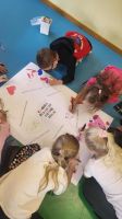 W oddziałach przedszkolnych skupiono się na działaniach sprzyjających budowaniu relacji, integracji rówieśniczej i wzajemnemu poznawaniu się. Dzieci słuchały opowiadań, rozmawiały o emocjach i sposobach wyrażania ich w konstruktywny sposób. Wspólnie tworzyły prace plastyczne, wykonywały zadania symboliczne (np. „Z sercem na dłoni”) oraz uczestniczyły w zabawach i scenkach, które pomagały im zrozumieć, jak żyć w zgodzie z rówieśnikami.