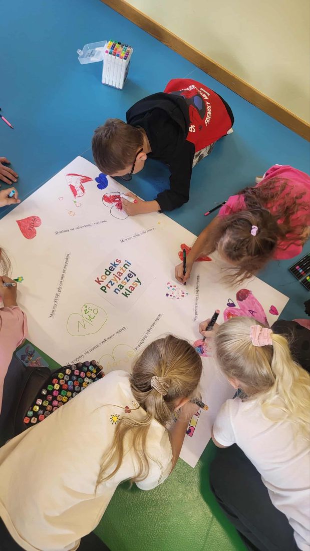 W klasach szkolnych działania koncentrowały się na tematyce przeciwdziałania przemocy — zarówno tej fizycznej, jak i psychicznej czy internetowej. Uczniowie pracowali w grupach, odgrywali scenki trudnych sytuacji, prowadzili dyskusje nad właściwymi reakcjami oraz prezentowali sposoby rozwiązywania konfliktów. W klasach młodszych zrealizowano m.in. Kodeks Przyjaźni, a w starszych – tematy związane z cyberprzemocą i wsparciem rówieśniczym.