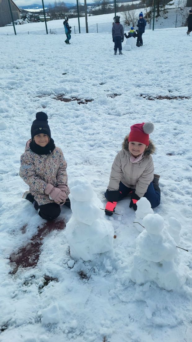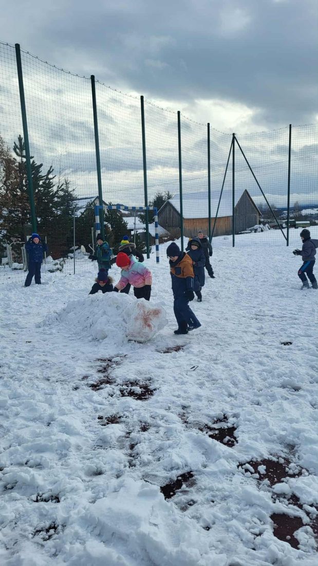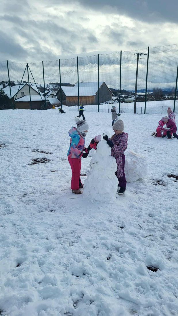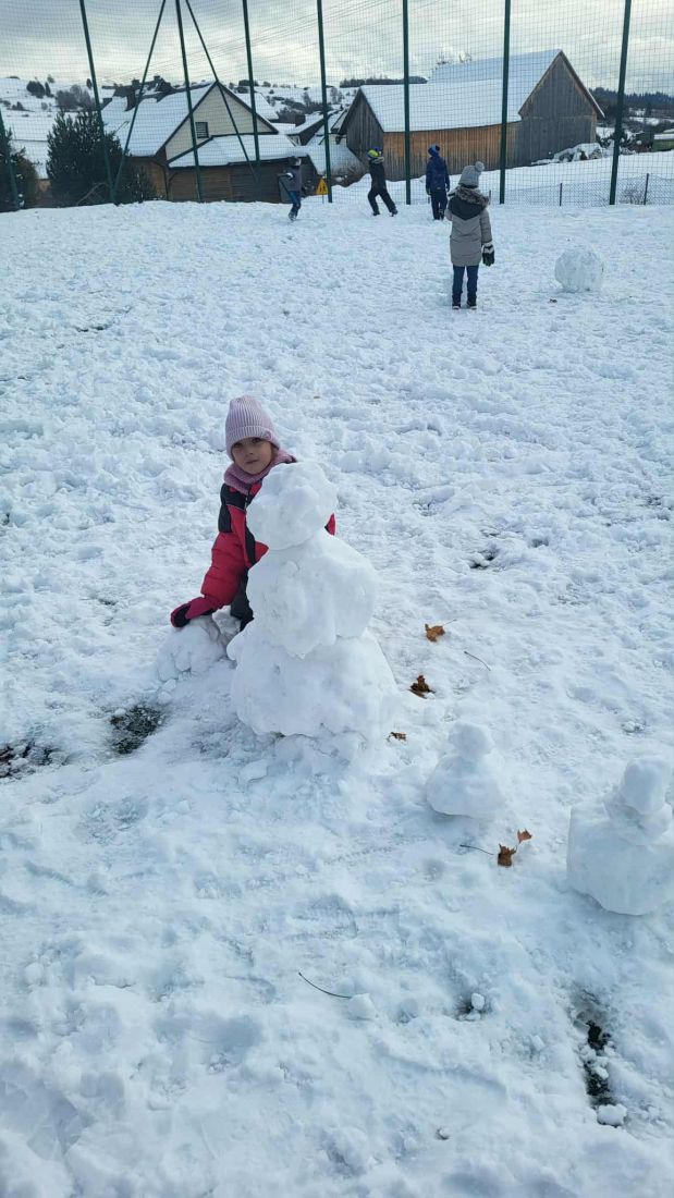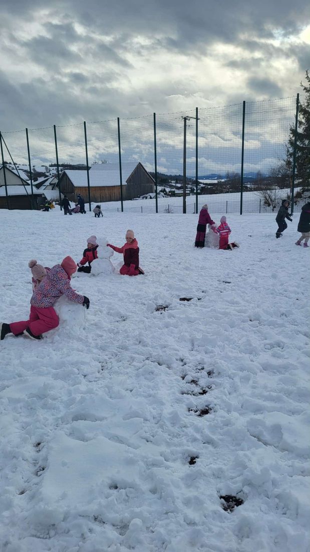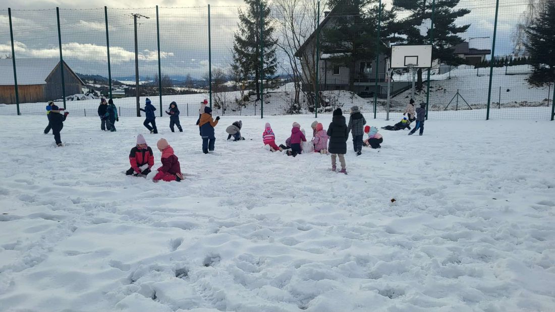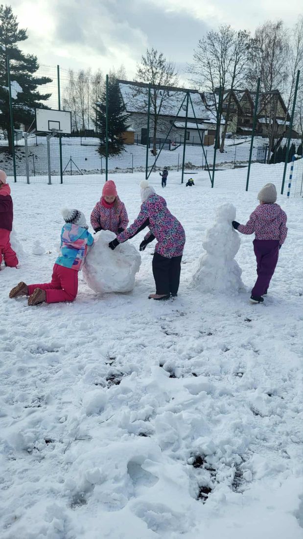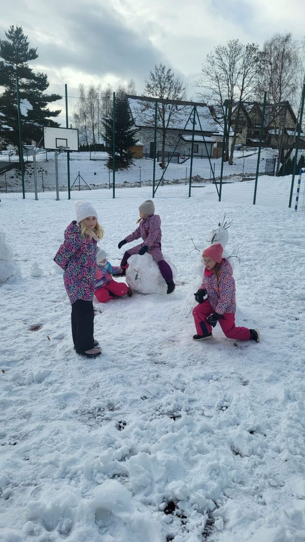 Dzieci z ogromnym zaangażowaniem lepiły bałwany, tworząc prawdziwe śnieżne arcydzieła. Radości, śmiechu i kreatywności nie brakowało – to był naprawdę udany, zimowy dzień!