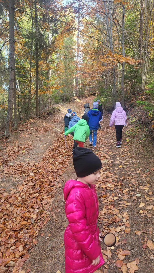 Końcem października, korzystając z pięknej jesiennej pogody, uczniowie klasy Ib wybrali się na zajęcia terenowe do pobliskiego lasu. 🍁