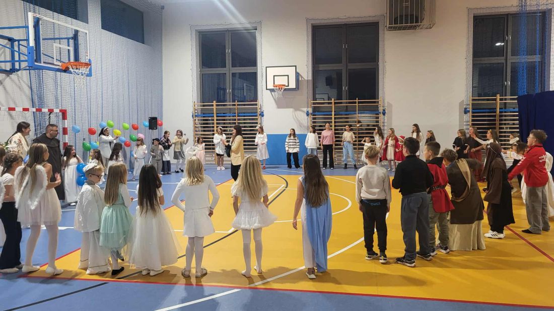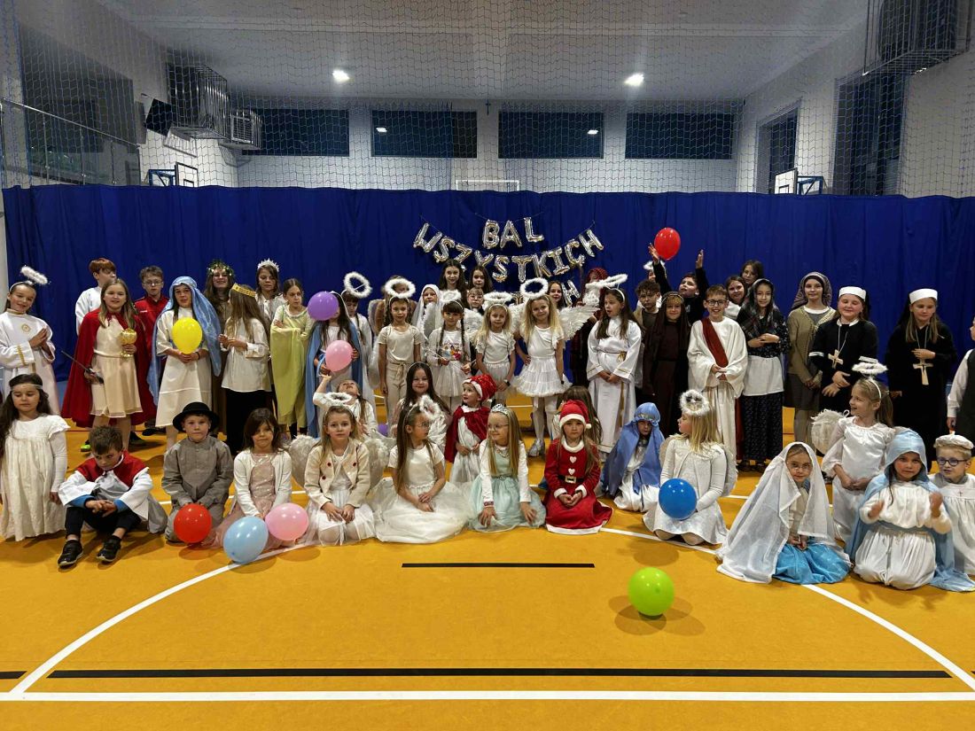 31 października z okazji Wigilii Wszystkich Świętych na hali przy szkole odbył się Bal Wszystkich Świętych. Hala zamieniła się wybieg na którym mogliśmy zobaczyć wiele świętych postaci. Parkiet zamienił się w niebo w którym wspólnie ćwiczyliśmy tańce gdyż św. Augustyn: „Człowieku, naucz się tańczyć, bo inaczej aniołowie w niebie nie będą wiedzieć co z tobą robić”. Wśród licznych aniołów, Maryi, Józefa i Jezusa. Można było spotkać Św Jana Pawła II, św Mikołaja, św Franciszka, św Barbarę, św Jadwigę czy św. Dominika Savio. Młodsze dzieci bawiły się z chustą, gdy starsze rozwiązywały zadania. Był także słodki poczęstunek, wybieg świętych oraz konkurs na najciekawsze przebranie. Wszyscy świetnie się bawili! Do zobaczenia za rok!