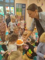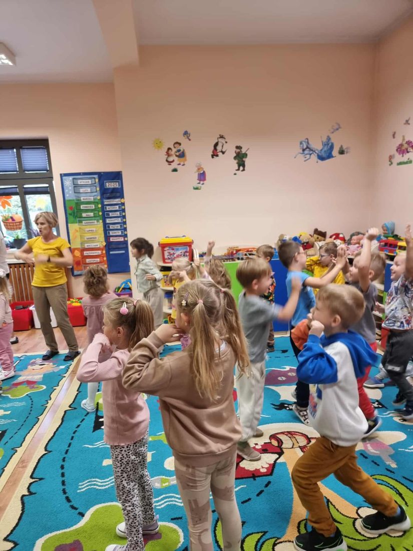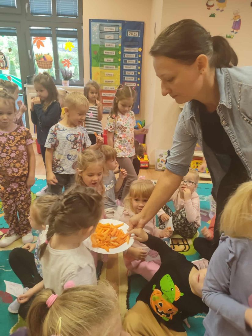 W naszym przedszkolu odbyły się wyjątkowe zajęcia pod hasłem „Dzień w kolorach jesieni”. Był to dzień pełen smaków, zapachów i barw, ponieważ tematem przewodnim były warzywa. Dzieci przyniosły z domu różnorodne warzywa, dzięki czemu mogły je poznać z bliska – oglądać ich kształt i kolor, wąchać, a nawet próbować. Wspólnie wysłuchały wiersza „Warzywa w ogrodzie”, po którym odbyła się rozmowa na temat jego treści. Radosnym akcentem był taniec do piosenki „Witaminki”, który sprawił wszystkim wiele radości. Nie zabrakło także działań plastycznych – dzieci kolorowały obrazki przedstawiające warzywa, rozwijając przy tym wyobraźnię i zdolności manualne. Na zakończenie dnia odbyła się sesja fotograficzna „Dzień w kolorach jesieni”, która utrwaliła te piękne i radosne chwile. Był to dzień pełen jesiennych barw i dobrej zabawy, a przy okazji świetna lekcja o zdrowym odżywianiu.