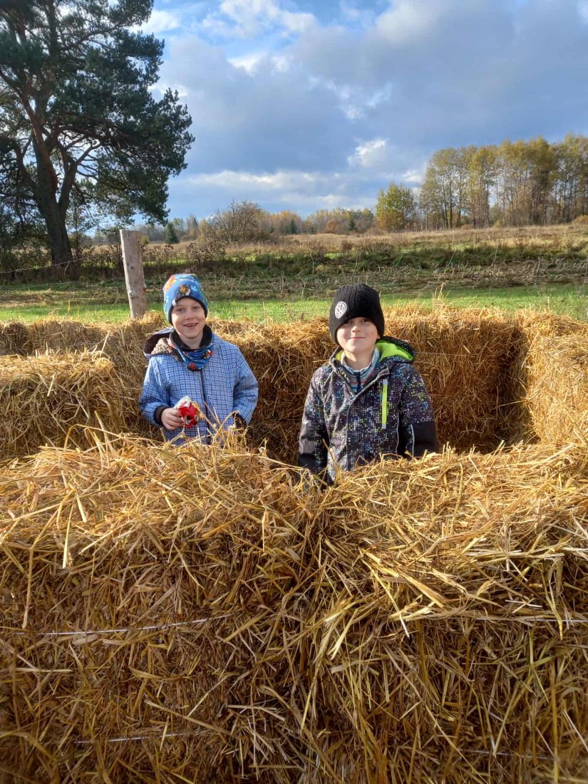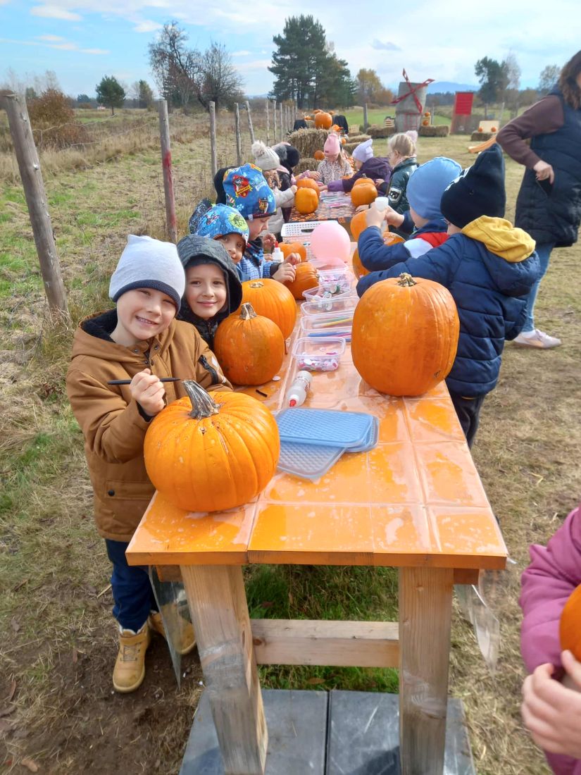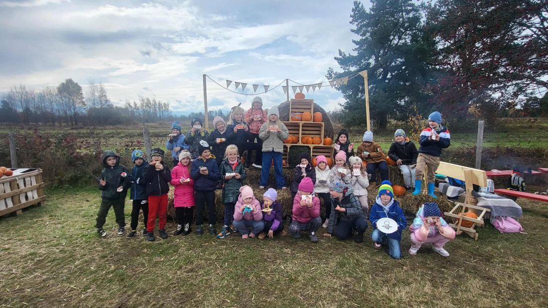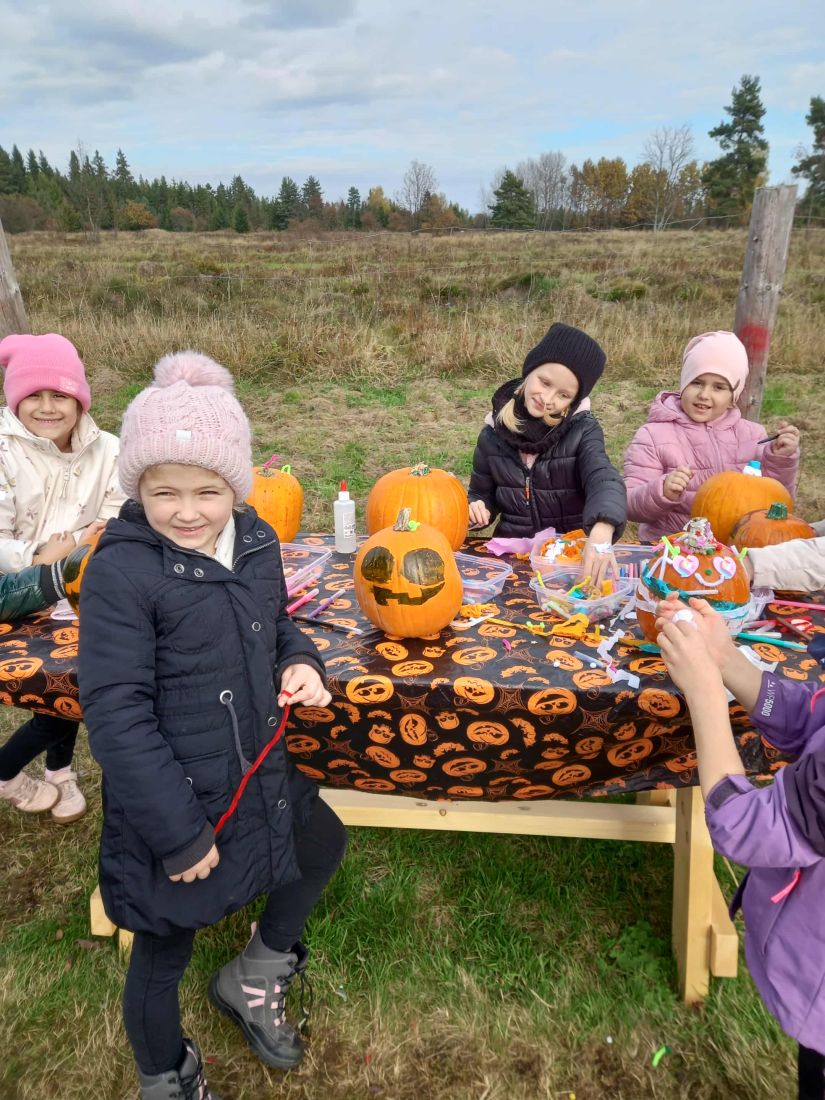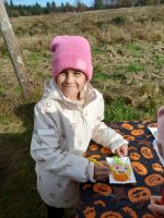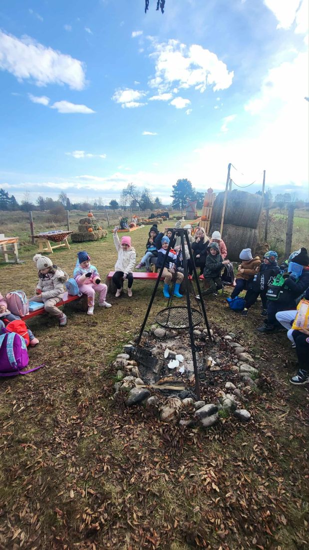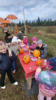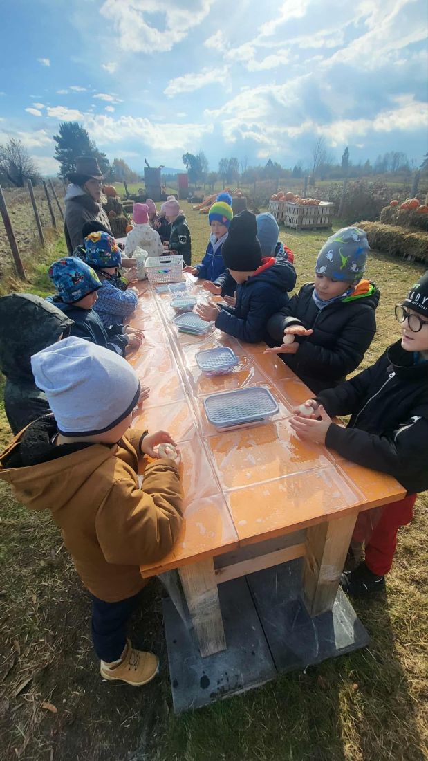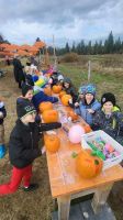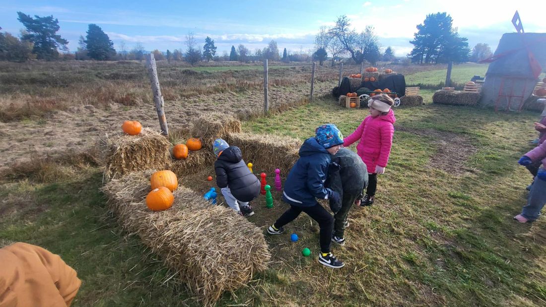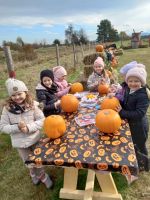 Mieliśmy wspaniałe warsztaty: wykonanie dyni z masy solnej, ozdabianie prawdziwych dyń, skoki w workach, przeciąganie liny, szukanie zaginionej dyni i mnóstwo innych zabaw oferowanych przez farmę – labirynty, kręgle, piłeczki, ringo itp. A co najważniejsze – słoneczko nas mocno ogrzewało. Nie zabrakło ciepłej herbatki, ogniska i oczywiście kiełbasek, które wszyscy zjedliśmy ze smakiem.