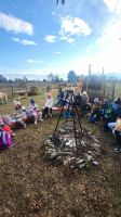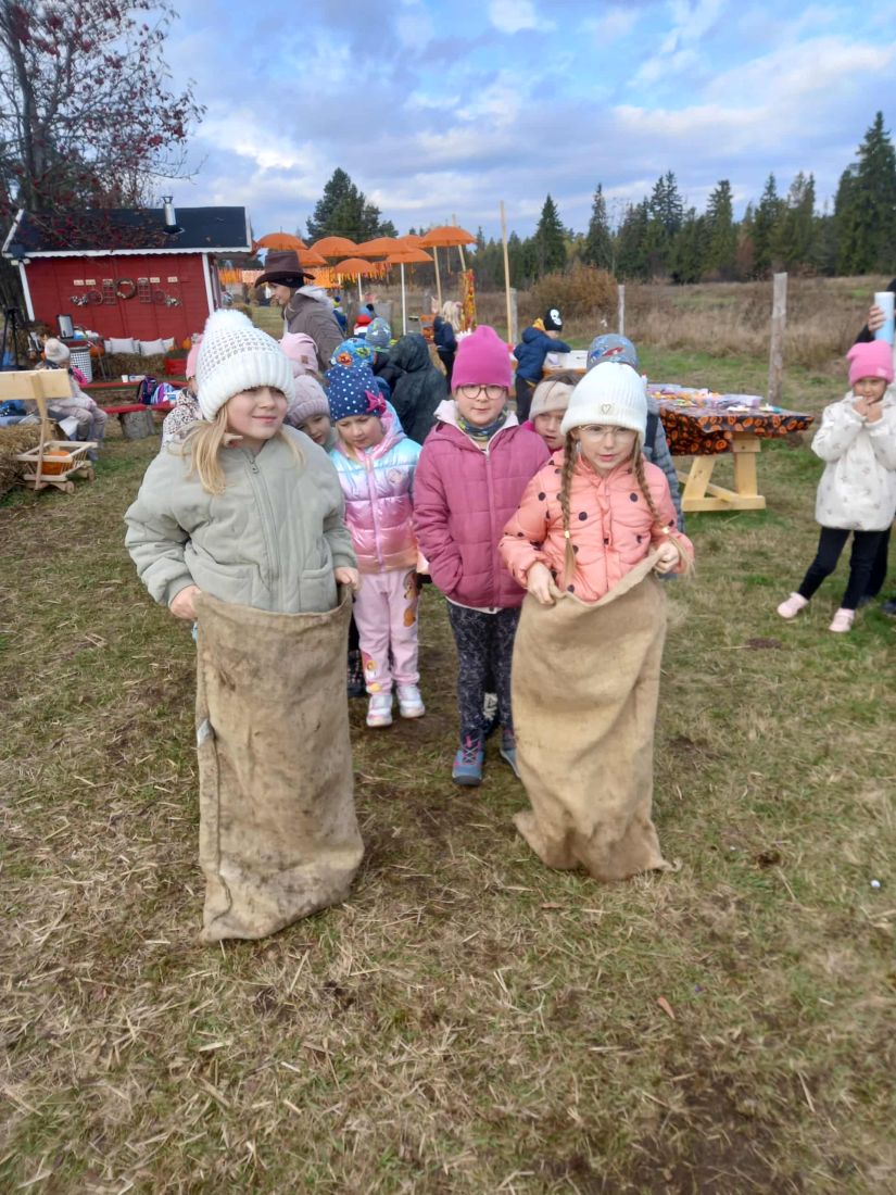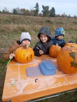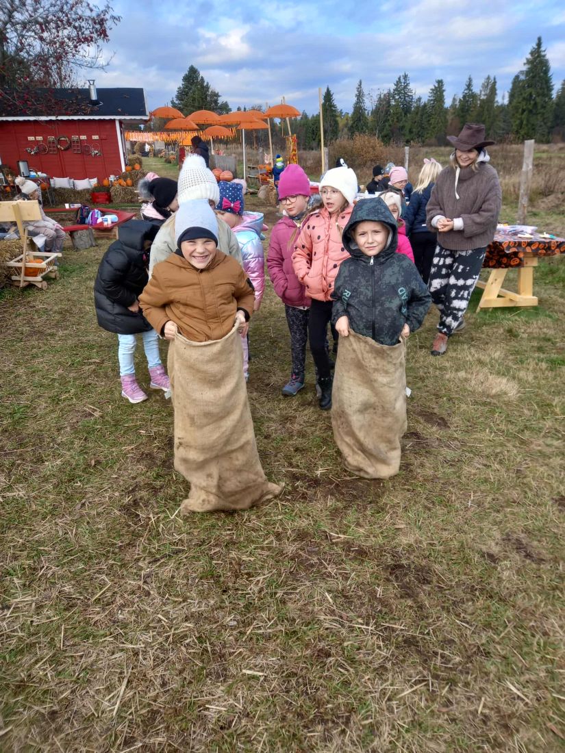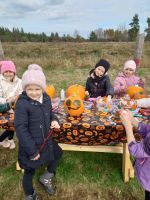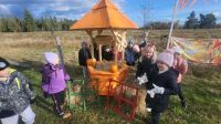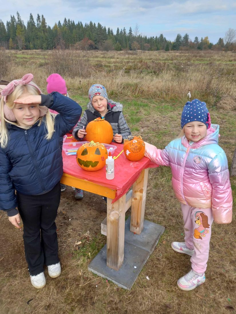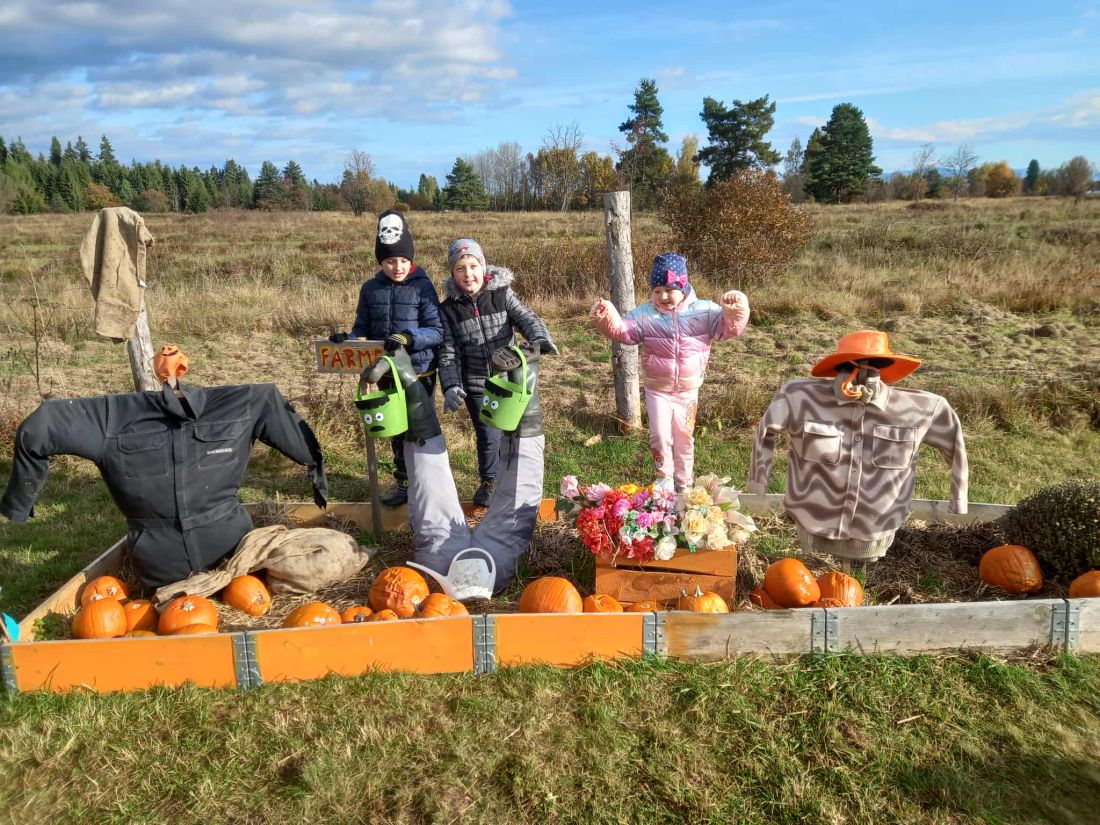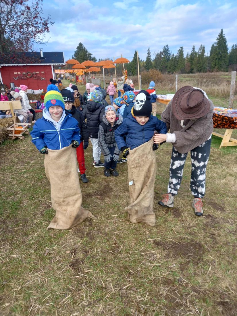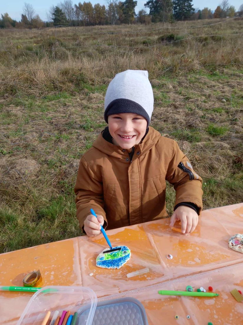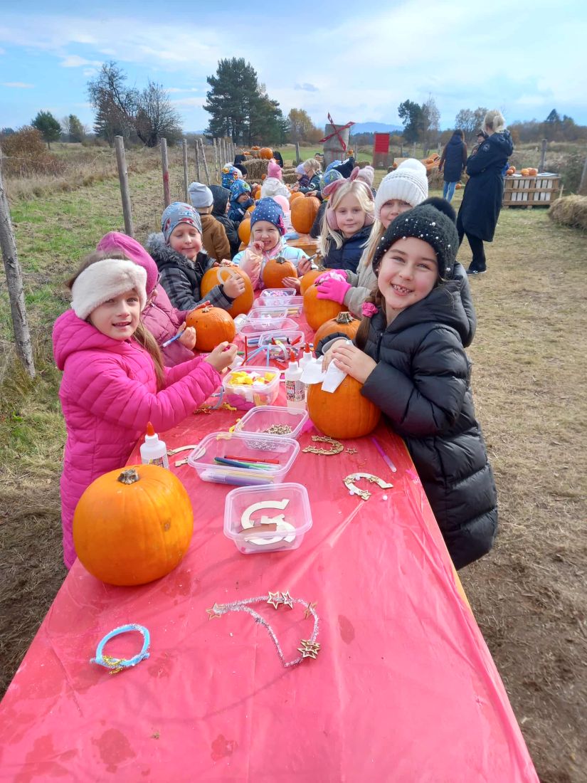 Mieliśmy wspaniałe warsztaty: wykonanie dyni z masy solnej, ozdabianie prawdziwych dyń, skoki w workach, przeciąganie liny, szukanie zaginionej dyni i mnóstwo innych zabaw oferowanych przez farmę – labirynty, kręgle, piłeczki, ringo itp. A co najważniejsze – słoneczko nas mocno ogrzewało. Nie zabrakło ciepłej herbatki, ogniska i oczywiście kiełbasek, które wszyscy zjedliśmy ze smakiem.
