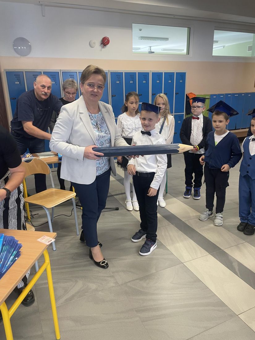 1 października uczniowie klas 1ab stali się prawowitymi uczniami naszej szkoły. Zaprezentowali program artystyczny. Dowiedli, że wiedzą, jak należy zachowywać się w szkole, na drodze oraz, że dobrze znają naszą ojczyznę. Zaprezentowali swoje talenty wokalne, taneczne i recytatorskie, wzbudzając gromkie brawa zgromadzonych osób. Pojawiły się też łzy na twarzach wzruszonych mam i tatusiów. Po występach pierwszoklasiści ślubowali, że będą dobrymi Polakami, uczniami i kolegami. Obiecali, że będą się pilnie uczyć, szanować przyrodę, pomagać tym, którzy pomocy oczekują i sprawiać radość rodzicom oraz nauczycielom. Swoje przyrzeczenie przypieczętowali odciskiem własnego palca na tekście ślubowania. Pani dyrektor Maria Mikołajczyk pasowała pierwszaki ogromną kredką. Na pamiątkę tego wydarzenia dzieci otrzymały dyplomy. Były też życzenia oraz prezenty od rodziców i Samorządu Uczniowskiego. Rodzice pierwszaczków przekazali na ręce pani dyrektor drzewko, które uczniowie posadzą obok szkoły. Po uroczystości rodzice zaprosili dzieci na słodki poczęstunek.