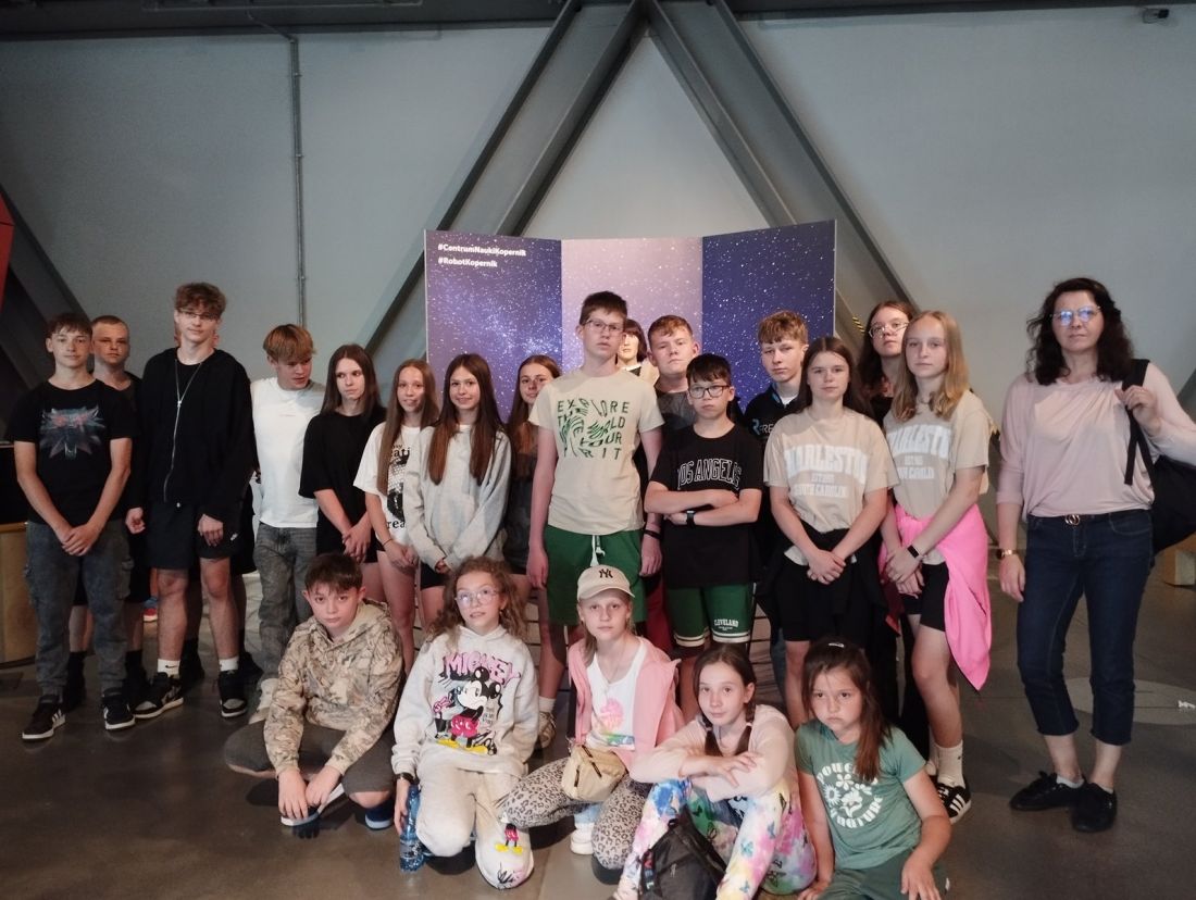 10 czerwca 2024 roku uczniowie klasy 7 i 4, wraz z opiekunami wyruszyli na trzydniową wycieczkę do Warszawy. Celem wycieczki było zapoznanie się z najciekawszymi atrakcjami stolicy oraz samym miastem. Około godziny 14.00 dojechaliśmy na miejsce i rozpoczęliśmy zwiedzanie od Centrum Kopernika, tu mogliśmy poznawać prawa nauki poprzez samodzielne przeprowadzanie doświadczeń na interaktywnych wystawach. Następnego dnia, o poranku wyjechaliśmy na XXX piętro Pałacu Kultury i Nauki, potem przejazd przez trochę zakorkowaną Warszawę przez rondo dr Gaulle'a (palma jeszcze stoi) do Łazienek Królewskich. Następny punkt programu to zwiedzanie z przewodnikiem. Na Starym Mieście, gdzie znajduje się Kolumna Zygmunta III Wazy spotkaliśmy się z panem przewodnikiem. Od razu udaliśmy się do Zamku Królewskiego. Potem powędrowaliśmy w kierunku Rynku Starego Miasta. Po drodze mijaliśmy zrekonstruowane kamienice, na które baczną uwagę zwracał pan przewodnik. Widzieliśmy też rozbity dzwon na Kanonii tuż przy naszym hostelu, który został odnaleziony po I wojnie światowej, a także najwęższą kamienicę warszawską i w samym centrum rynku pomnik Syrenki Warszawskiej. Później udaliśmy się w kierunku Barbakanu, gdzie spacerowaliśmy po średniowiecznych murach. I znów kolacja, potem odpoczynek i wieczorny spacer po starówce. Podczas wieczornego spaceru dotarliśmy do Grobu Nieznanego Żołnierza. Poczekaliśmy na zmianę warty, dzięki temu mogliśmy dokładnie obserwować działania żołnierzy. W ostatnim dniu jako pierwsze zwiedzaliśmy Muzeum Postania Warszawskiego. Zobaczyliśmy tam dużo eksponatów dotyczących powstania; hełmy, mundury i ubrania powstańców, pistolety, karabiny, legitymacje, listy powstańców i biało – czerwone opaski. Finałowy punkt naszego zwiedzania to PGE Narodowy, chyba zrobił największe wrażenie na uczestnikach.