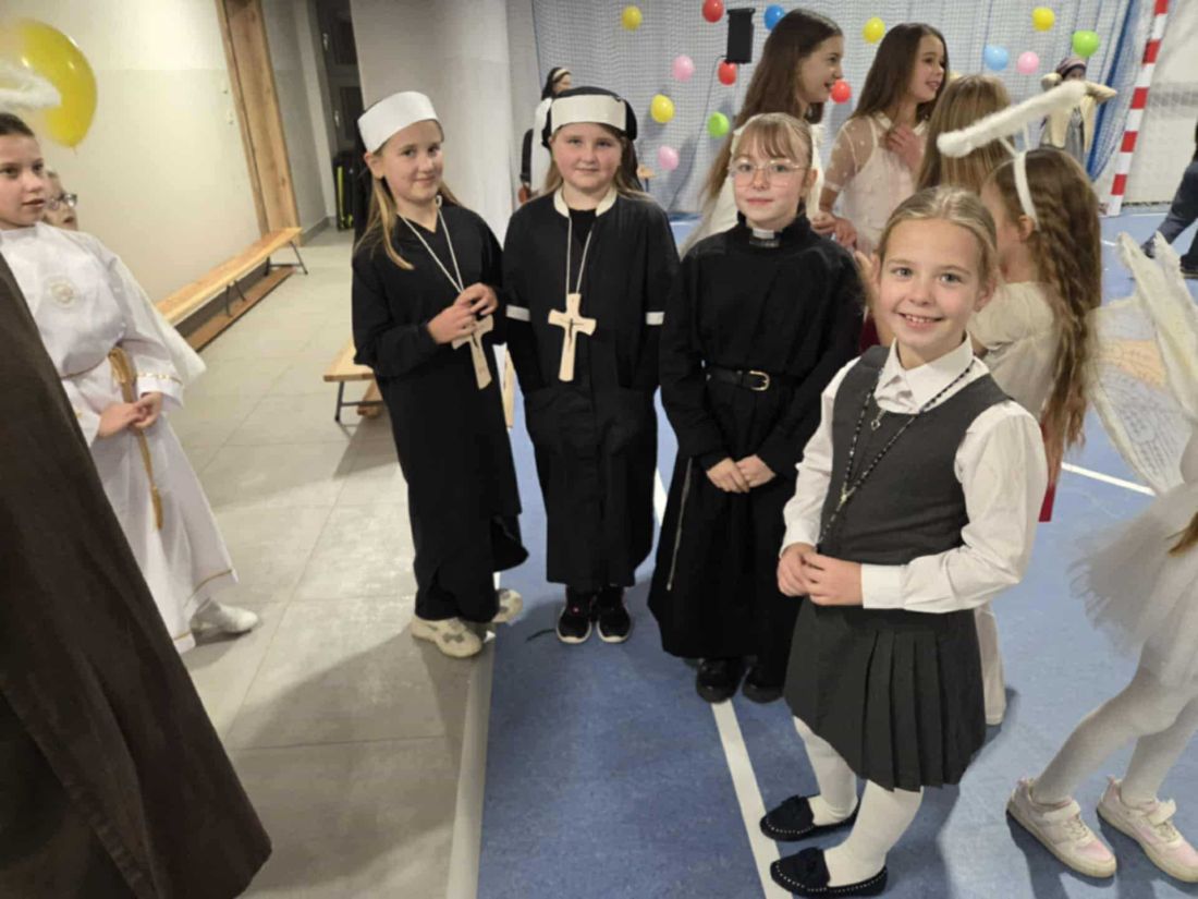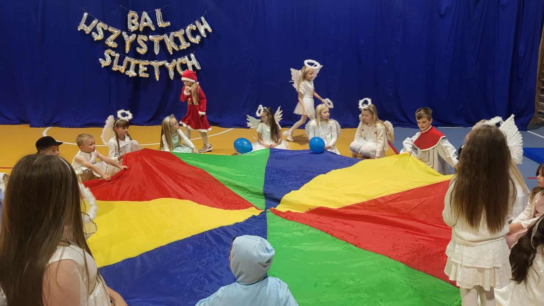 31 października z okazji Wigilii Wszystkich Świętych na hali przy szkole odbył się Bal Wszystkich Świętych. Hala zamieniła się wybieg na którym mogliśmy zobaczyć wiele świętych postaci. Parkiet zamienił się w niebo w którym wspólnie ćwiczyliśmy tańce gdyż św. Augustyn: „Człowieku, naucz się tańczyć, bo inaczej aniołowie w niebie nie będą wiedzieć co z tobą robić”. Wśród licznych aniołów, Maryi, Józefa i Jezusa. Można było spotkać Św Jana Pawła II, św Mikołaja, św Franciszka, św Barbarę, św Jadwigę czy św. Dominika Savio. Młodsze dzieci bawiły się z chustą, gdy starsze rozwiązywały zadania. Był także słodki poczęstunek, wybieg świętych oraz konkurs na najciekawsze przebranie. Wszyscy świetnie się bawili! Do zobaczenia za rok!