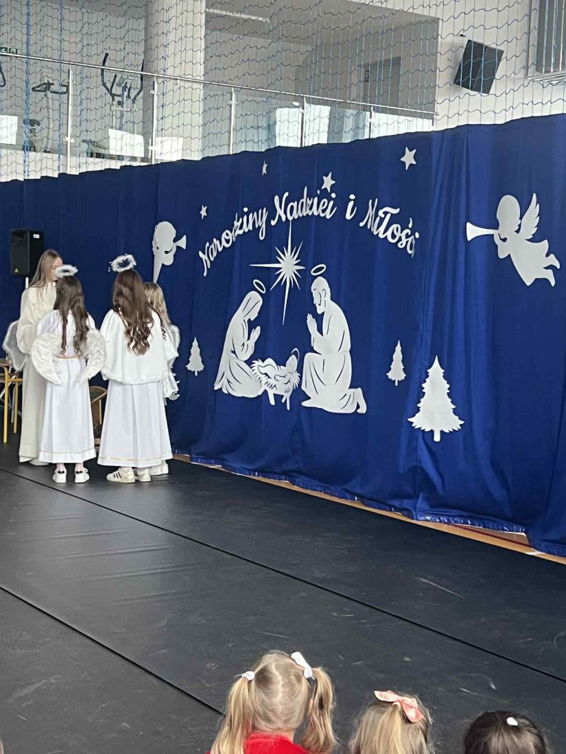 W piątek 19 grudnia odbyło się wyjątkowe spotkanie świąteczne 🎄, podczas którego obejrzeliśmy jasełka w wykonaniu uczniów klas V i VI 🎭. Przedstawienie zostało przygotowane pod opieką pani Oliwii Zubczyńskiej i wprowadziło całą społeczność szkolną w świąteczny, bożonarodzeniowy nastrój ✨. Uczniowie z dużym zaangażowaniem wcielili się w swoje role, prezentując zarówno umiejętności aktorskie, jak i wokalne 🎶, co zostało nagrodzone gromkimi brawami 👏.