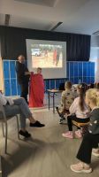Nie zabrakło też ciekawostek o Masajach – jednym z najbardziej rozpoznawalnych plemion Afryki. Pan Dariusz pokazał, jak żyją dziś i jak pielęgnują swoje tradycje. Uczniowie dowiedzieli się także o uprawach kawy i herbaty w regionie Kericho, a na zakończenie wirtualnej podróży odwiedzili sierociniec dla małych słoników oraz miejsce, gdzie można pogłaskać i nakarmić żyrafy.